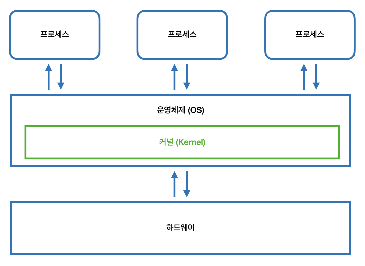 오직 하드웨어의 자원에 접근할 수 있는 것은 커널을 통해서만 할 수 있다는 것이다.