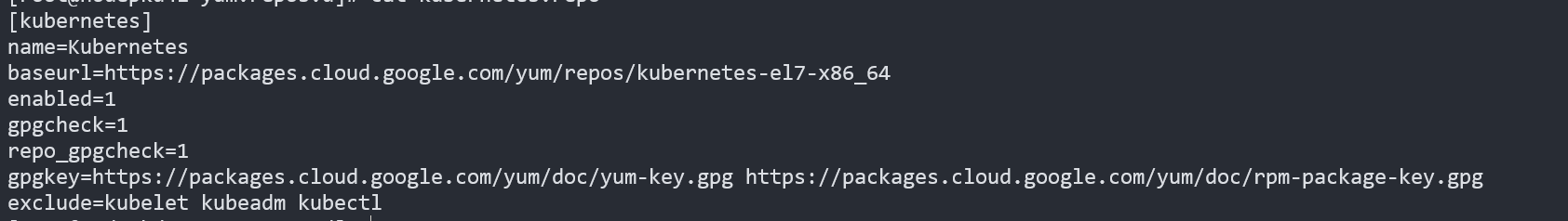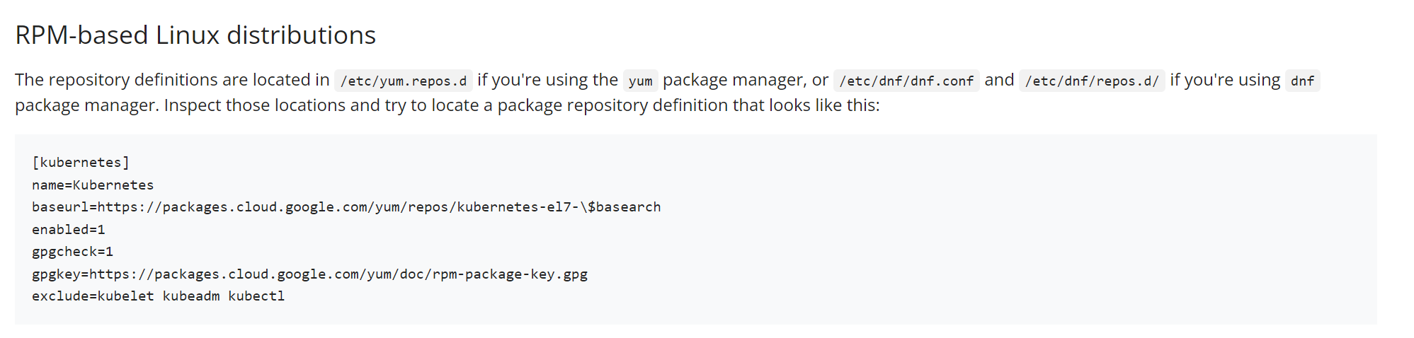 먼저 노드의 OS는 RHEL을 이용하고 있기 때문에, /etc/yum.repos.d/kubernetes.repo의 내용을 확인하였다.