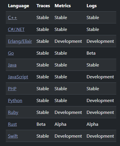 하지만 현재는 Datadog이나 Elastic과 같은 유료 서비스를 제외한다면, 관측 가능성을 위한 데이터를 발생시키는 오픈소스 중에는 Otel이 많은 입지를 차지하고 있는 것이 아닌가 싶다.
