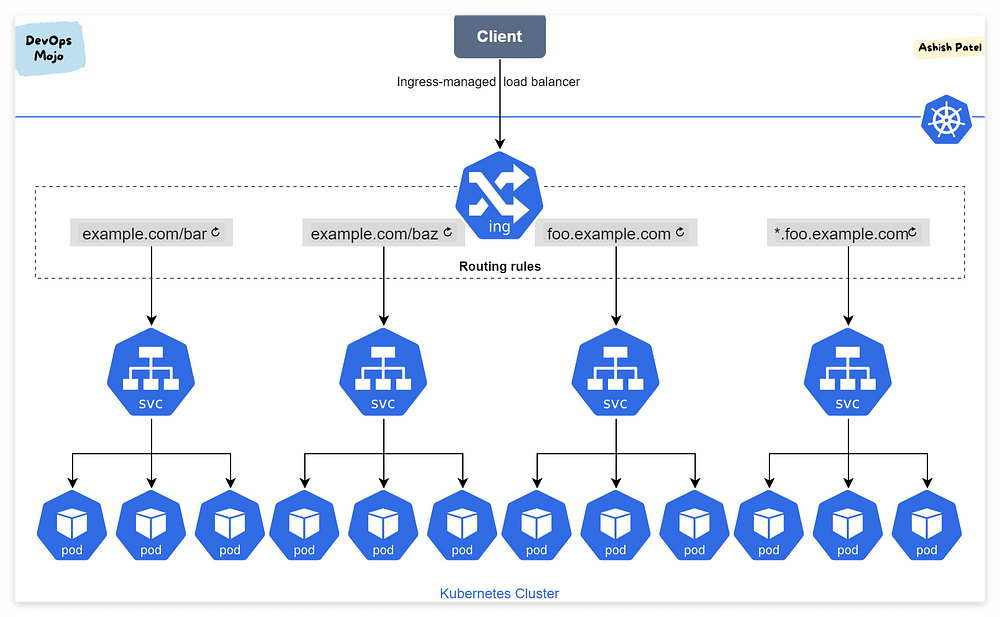위의 사진을 보면, URI의 End-Point를 기반으로 서비스를 분기하여 각 파드에 요청을 보내는 것을 볼 수 있다.